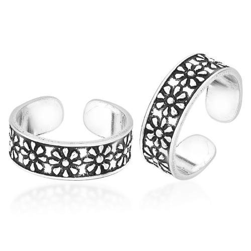 ELOISH Sterling Silver Pair of Beautiful Thick Flower Design Toe Rings Pair. Toe Rings for Women